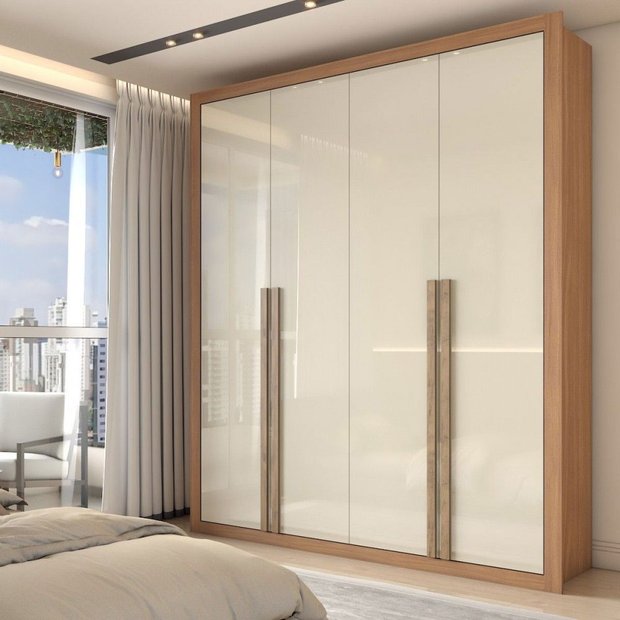 Guarda-roupa Solteiro Severo 4 Portas 3 Gavetas Cinamomo/off White - Panorama Móveis Cinamomo/Off White