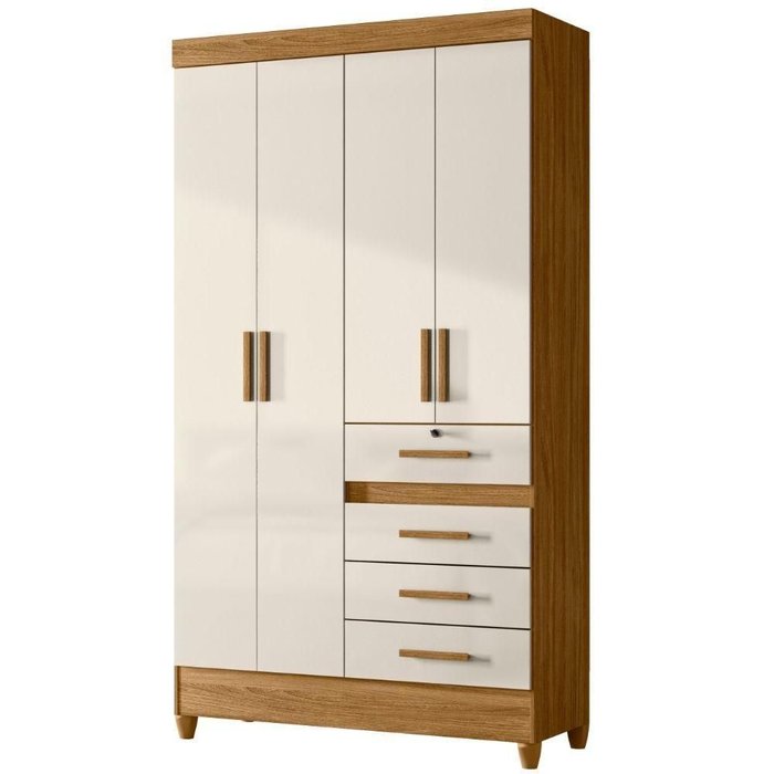 Guarda Roupa Solteiro Sobral 4 Portas Freijó Off White Moval