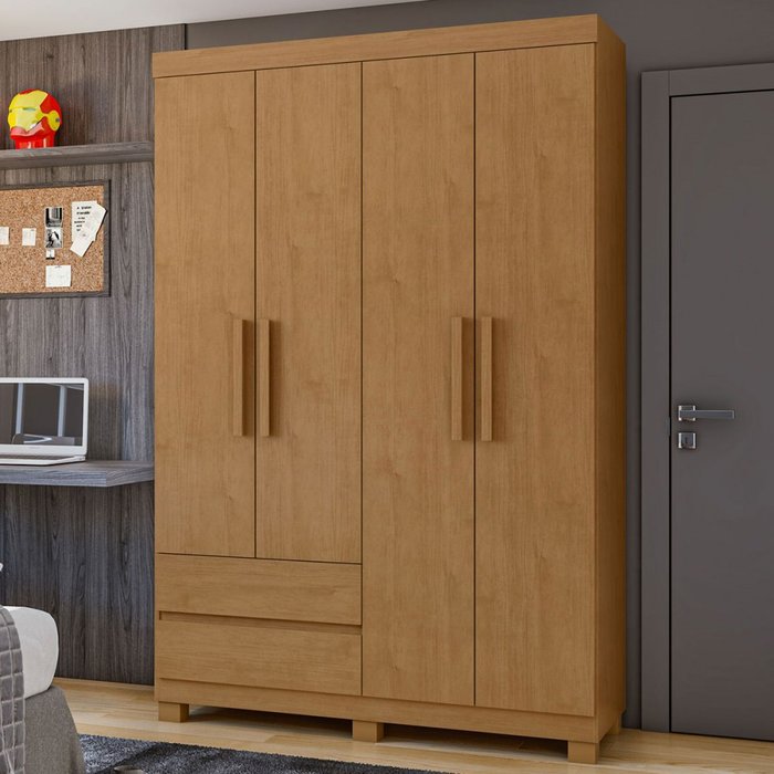 Guarda-roupa Solteiro Zeus 4 Portas 2 Gavetas 59602.58 Amêndoa Clean - Móveis Lopas