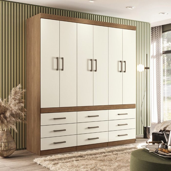 Guarda-roupa Star 6 Portas 9 Gavetas Jatobá/Areia