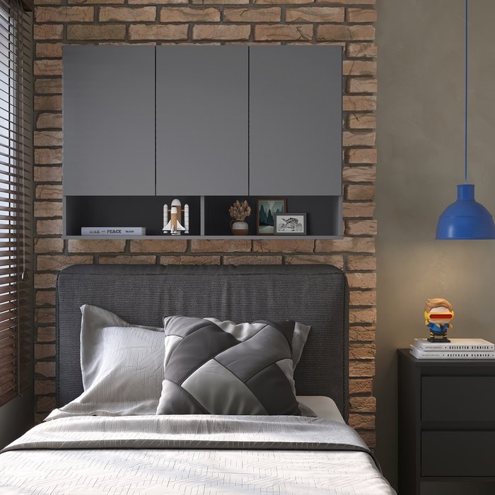 Guarda Roupa Suspenso 3 Portas e Nicho - Real Moveis - Cinza Cinza