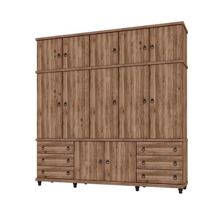 Guarda-Roupa Monte Carlo 5 Portas é um produto Tríplex que proporciona facilidade na montagem e desmontagem. Esse produto é estruturado em MDP 15 Mm e portas e gavetas em MDF 15mm, proporcionando sofisticação e qualidade. Possui amplo espaço interno, com acabamento amadeirado Touch. Produto feiro com base e tampo encabeçado de 30mm, proporcionando maior durabilidade ao produto, possui puxadores de ferro, cabideiros em alumínio, corrediça telescópica.