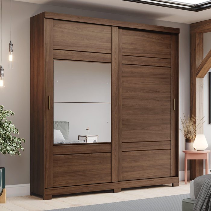 Guarda-roupa Verg 02 Pts. Deslizantes C/ Espelho Castanho - Henn