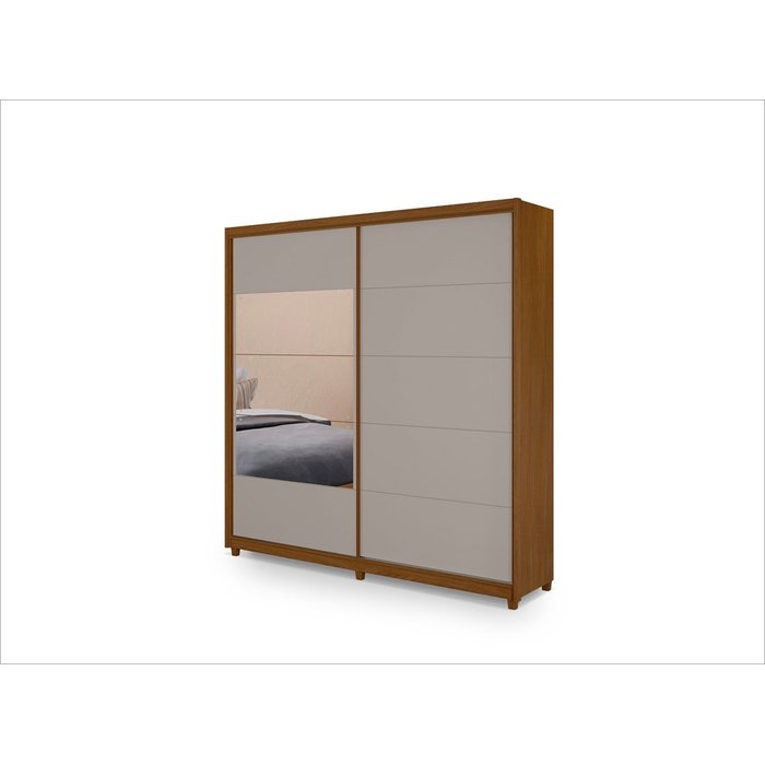Guarda Roupa Versátil 100% Mdf 2 Portas Correr C/ Espelho Nogueira Gianduia Fazzio Moveis