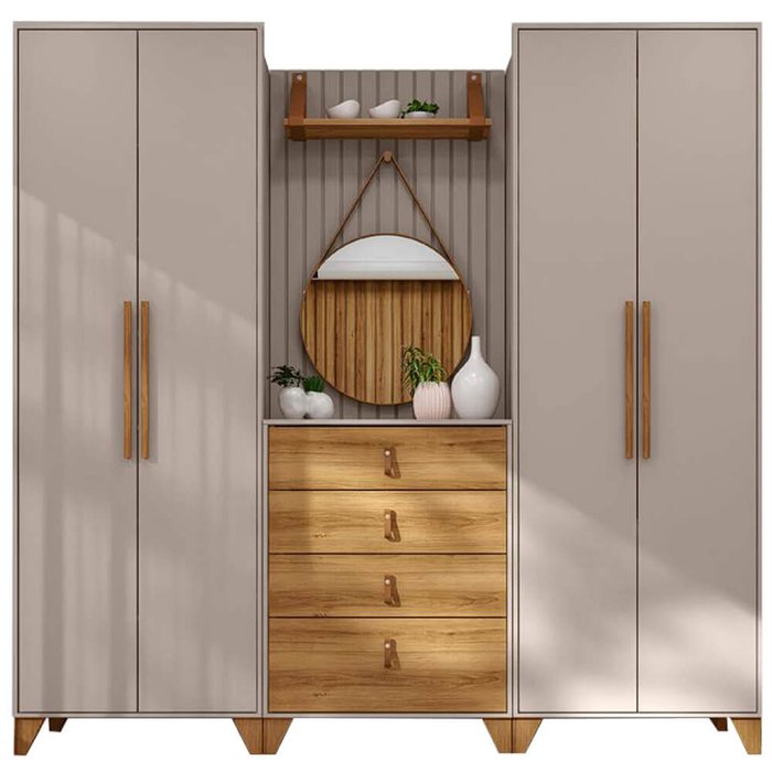 Guarda Roupa Verti Casal 5 Portas 3 Gavetas Fabrimoveis Gianduia Nature