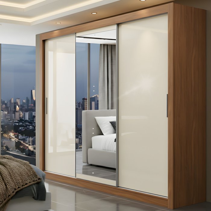 Um quarto moderno precisa de um móvel diferenciado, o Guarda Roupa Casal Viena foi desenvolvido para total conforto e modernidade. Possui três portas de correr, sendo a porta central com perfis puxadores de alumínio, tornando o móvel moderno. O Guarda Roupa é confeccionado em MDP de 12 mm e 15 mm com múltiplas repartições para armazenar roupas e objetos, além de possuir corrediças telescópicas nas gavetas, trilhos de alumínio para melhor deslizamento das portas e ótimo acabamento em pintura U.V. de alta resistência para satisfazer as necessidades do cliente. Os materiais utilizados são de primeira qualidade e respeitam o meio ambiente.!