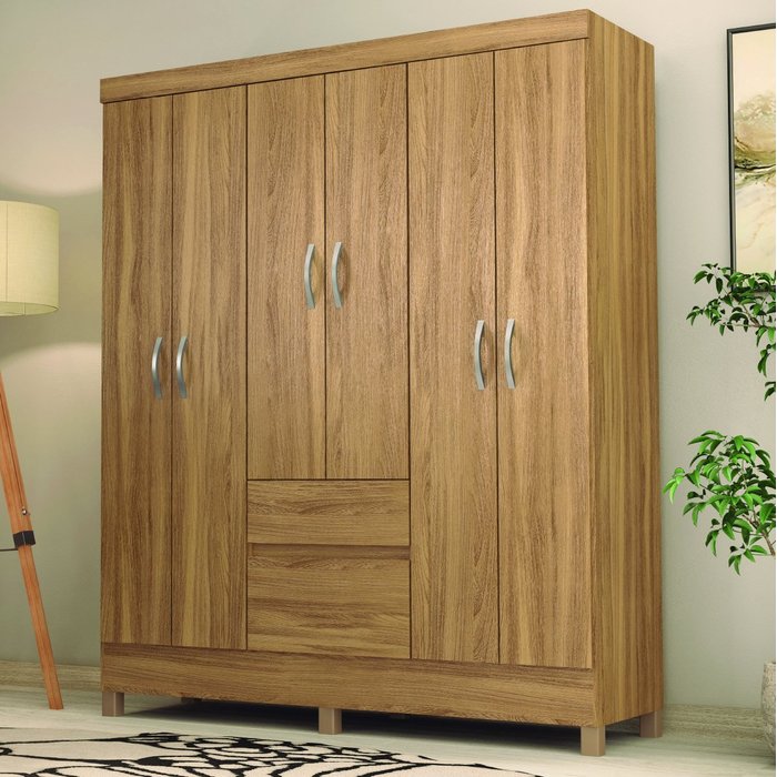 Guarda Roupas Casal 6 Portas 2 Gavetas Flash Amêndoa Demobile