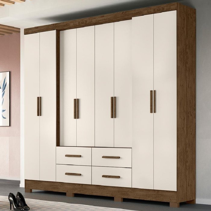 Guarda Roupas Casal 8 Portas 4 Gavetas San Lorenzo Castanho/Off White Moval