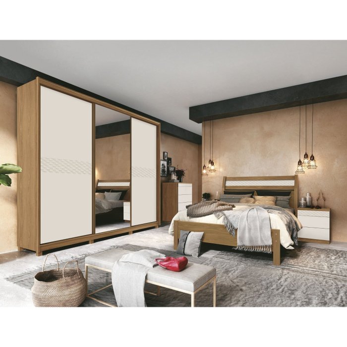 Guarda Roupas Casal com Espelho 3 Portas 5 Gavetas Murano Plus Off White