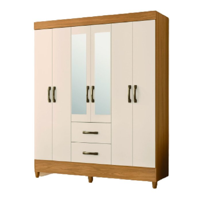 Guarda Roupas Casal com Espelho 6 Portas 2 Gavetas Mobi Carvalho / Off White Albatroz