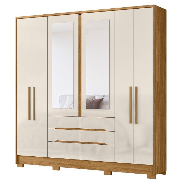 MODELO: Guarda Roupas Casal Com Espelho 6 Portas 6 Gavetas San Francisco