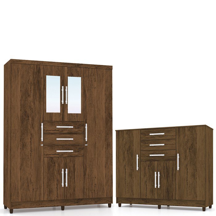 Guarda Roupas Casal Espelho 10020 E Comoda 20028 Imbuia Rustico VLR