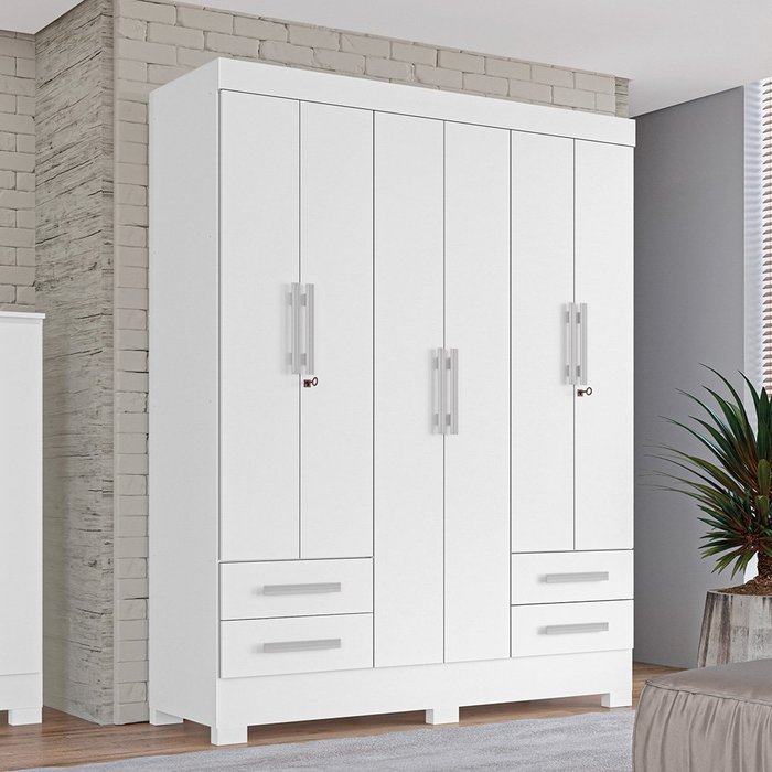 Guarda Roupas Casal Porto Rico Tuboarte 6 Portas 100% em Mdf Branco Branco