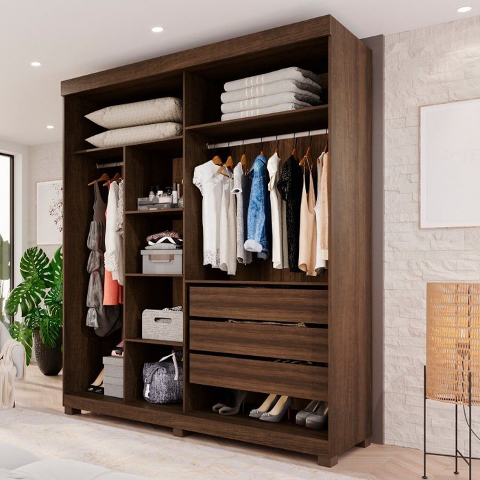 Guarda-roupas Closet Casal 3 Gavetas com Pés Blumenau Imbuia