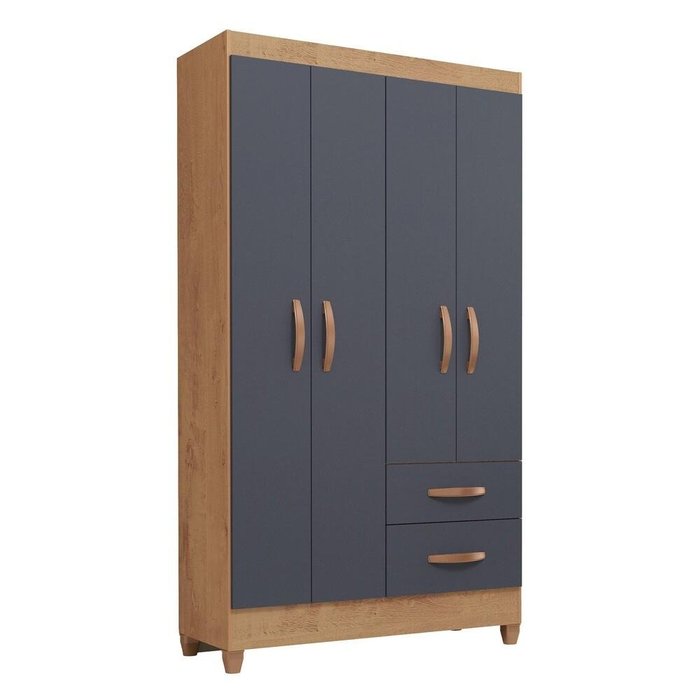 Guarda-Roupas com 4 Portas e 2 Gavetas Multimóveis CR35138 Canelato Rústico/Grafite
