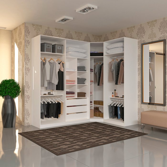 Guarda Roupas de Canto Closet Aberto 3 Módulos com 3 Gavetas 5 Cabideiros Prime Luciane Móveis