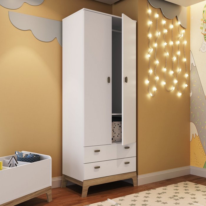 O Guarda Roupas 02 Portas e 02 Gavetas Branco Linha Favo de Mel da Completa Móveis é versátil, prática e elegante, com características que a destacam. Ideal para o quarto do seu bebê. Gavetas e prateleiras que facilitam e otimizam o espaço e aconchego para o ambiente, assim, acomodando e organizando as roupinhas e acessórios do dia a dia. Cabideiro incluso. Produto em MDP com corrediças metálicas e puxadores plásticos.!