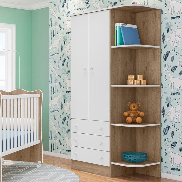 Guarda Roupas Infantil 2 Portas 3 Gavetas Carvalho Branco Branco