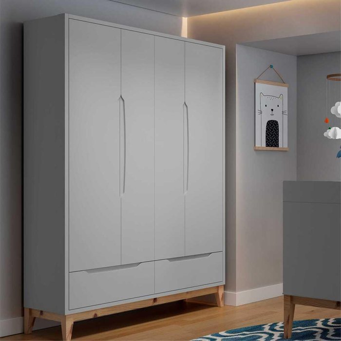 Guarda Roupas Infantil 4 Portas 2 Gavetas Multimóveis CR40028 Cinza Cinza