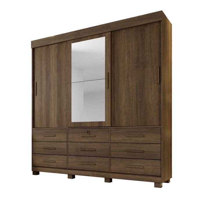 Guarda-Roupas Londres 3 Portas 9 Gavetas com Espelho Benetil Imbuia