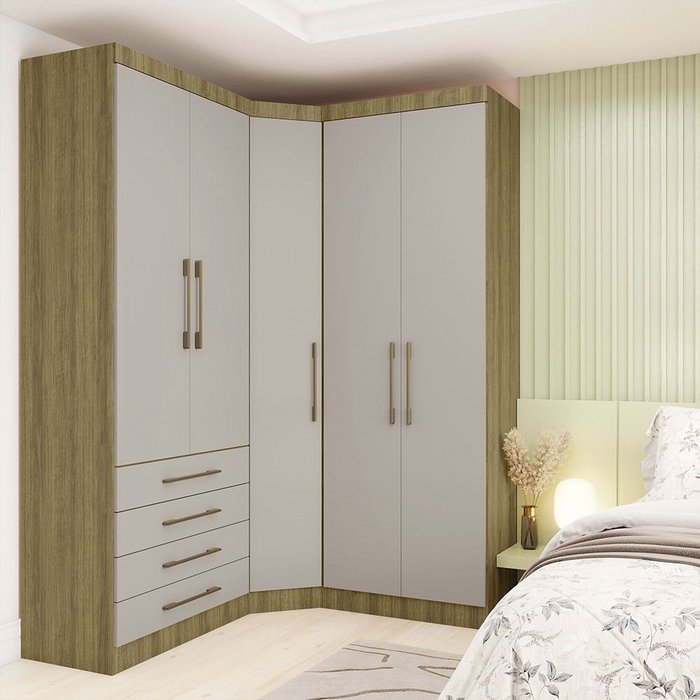 Guarda Roupas Modulado de Canto Diagonal 3 Peças com 5 Portas e 4 Gavetas Paris Luciane Móveis