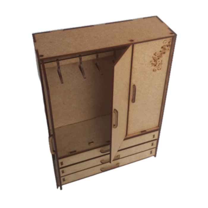 Guarda Roupas para Bonecas em Mdf Abre Portas e Gavetas