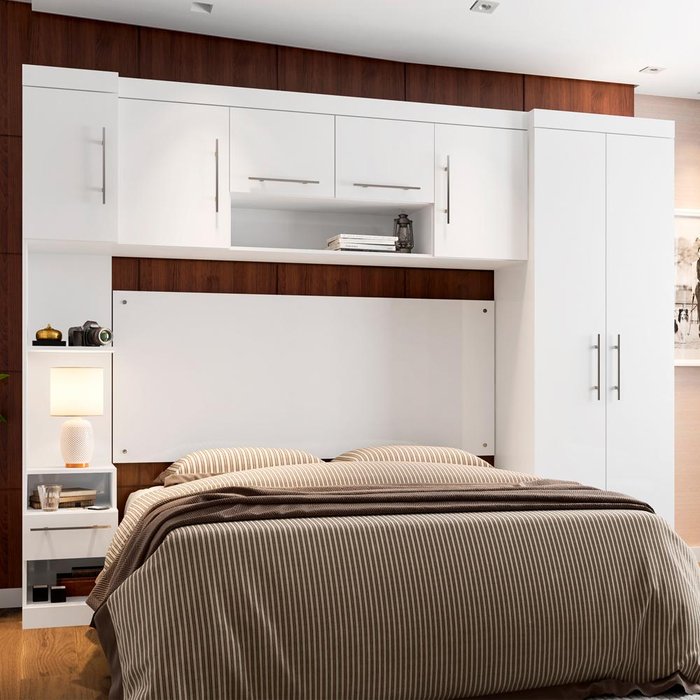 | ITENS INCLUÍDOS | 1 Módulo de Guarda Roupas com 2 Portas, 1 Mesa Auxiliar de Cabeceira, 1 Painel de Cabeceira, 1 Ponte Aérea de 1,80m |