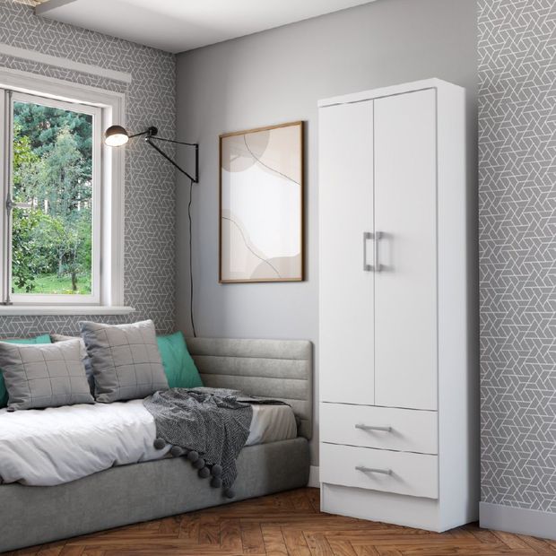 Guarda Roupas Solteiro 2 Portas 2 Gavetas MDP Sense Branco/Linho