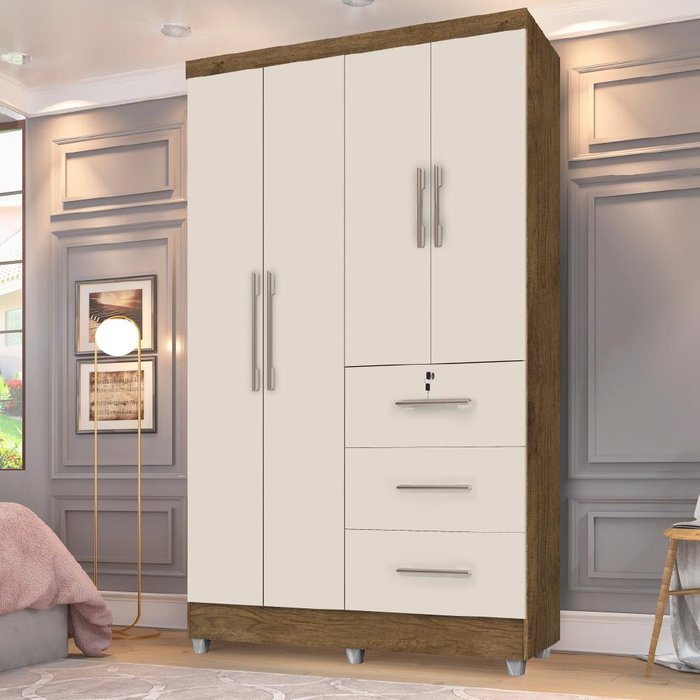 Guarda Roupas Solteiro 4 Portas 3 Gavetas Tokio Jequitibá / Off White