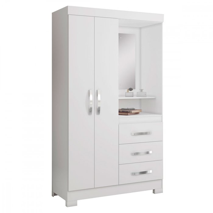 Com o Guarda Roupas NT5170 desenvolvido para que você não perca tempo procurando seus pertences e assim mantendo seu dormitório sempre organizado, confira: Produzido com madeira proveniente de reflorestamento em MDP, pintura em UV trazendo durabilidade aos tons do produto, acabamento em fosco/brilho trazendo uniformidade, corrediças metálicas, pés confeccionados em plástico, puxadores em PVC cromado e dobradiças metálicas.O guarda roupas possui o estilo capelinha, onde você pode colocar seus perfumes, makes ou cremes e para trazer mais praticidade possui um espelho ótimo para dar aquela conferida antes de sair ou até mesmo para se arrumar. Conta com um amplo espaço interno, um cabideiro para suas roupas longas, que pode amassar com mais facilidade, um calceiro para acomodar bem suas calças e na parte de baixo você pode utilizar para colocar caixas ou sapatos.E são três gavetas para utilizar com o que quiser, contém um ótimo espaço e assim você conseguirá organizar todos os itens necessários. Se você gosta de produtos práticos esse móvel é perfeito, pois, ele é Flex então se você enjoar basta trocar para tonalidade para o rosa.Notável a melhor escolha para quem gosta de qualidade e inovação!!!!Características do Produto: Material do Produto: MDP Pintura do Produto: UV Produto Flex: Sim Acabamento do Produto: Fosco Brilho Tipo de Porta: Articulada Material das Corrediças: Metálicas Material das Dobradiças: Metálicas Material dos Puxadores: PVC Cromado Material dos Pés: Plástico Possui Espelho: Sim Peso Máximo Suportado pelo Produto: 29 kg Quantidade de Portas: 02 Quantidade de Gavetas: 03 Quantidade de Cabideiro: 01 Quantidade de Calceiro: 01Dimensões do Produto Montado: Altura: 187 cm Largura: 107,80 cm Profundidade: 43,70 cm Peso: 51,74 kgINFORMAÇÕES IMPORTANTES Garantia de fábrica: 3 Meses após o recebimento do produto. - Os móveis serão entregues desmontados e com manual de montagem. - Não nos responsabilizamos pela montagem/instalação. Verifique a complexidade antes de decidir montar sozinho, ou contrate um profissional de sua confiança. - Montagem, instalações e desmontagens devem ser contratadas pelo comprador. - Confira as dimensões antes da compra, e certifique-se de que o produto passará por elevadores, portas e corredores, já que nossa entrega não inclui a subida de lances de escada ou o içamento de produtos. - As imagens ambientadas são meramente ilustrativas e os objetos decorativos que aparecem em fotos não acompanham o produto. - As cores do produto na foto podem variar de acordo com o monitor, a iluminação do ambiente ou sua percepção visual. - Atenção: pequenos detalhes e acabamentos que não ficam evidentes na foto, estão detalhados na descrição. - O envio dos produtos é feito através de transportadora. Temos seguro contra qualquer avaria ocorrida durante o transporte até sua casa.