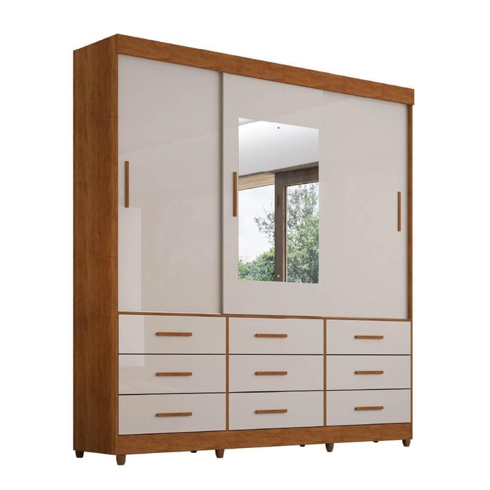 Guarda Roupas Star New Sallêto 3 Portas e Espelho - Cinamomo/Off White