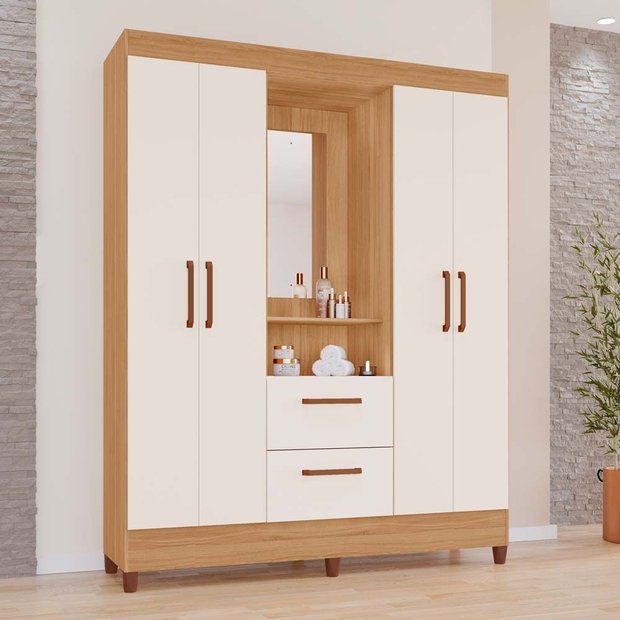 Apresentamos o Guarda-Roupas Vinhedo. É um móvel robusto e elegante, totalmente fabricado em madeira de alta qualidade. Com duas gavetas espaçosas e quatro portas, oferece excelente capacidade de armazenamento para roupas e acessórios. Equipado com cabideiros de madeira revestidos e corrediças telescópicas garantem praticidade e organização. É uma escolha sofisticada para qualquer ambiente, combinando estilo e funcionalidade.