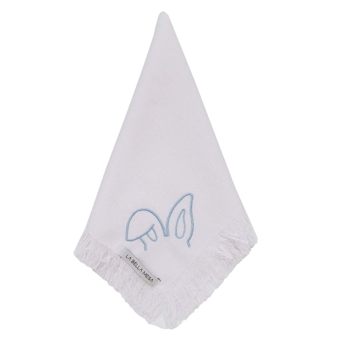 Guardanapo Linho Branco Franja Orelhinha Azul