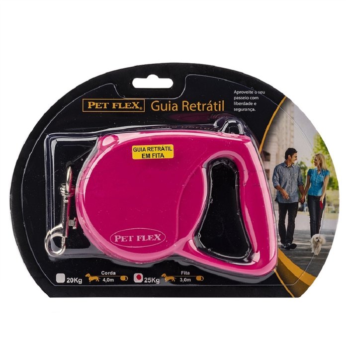 GUIA RETRATIL FITA PET FLEX 3,0 MTS ATE 25 KG ROSA