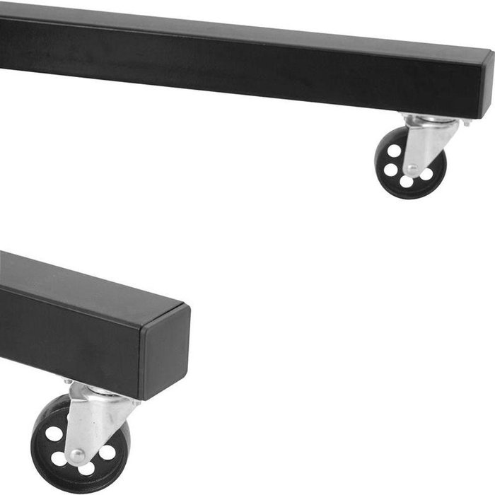 1 Guincho hidráulico dobrável. Acompanha: 6 rodízios giratórios, sendo: 4 peças de 90 mm (2 dianteiras/2 traseiras) e 2 peças de 80 mm (intermediárias).