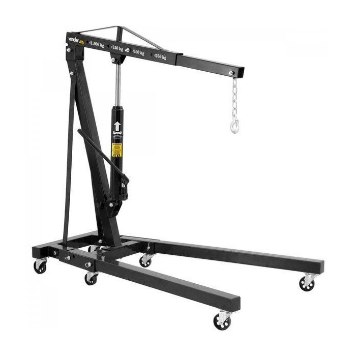 Guincho dobrável, facilitando o armazenamento e o transporte. Possui acabamento pintado que proporciona maior resistência à corrosão/oxidação além de rodas de ferro, conferindo maior durabilidade.