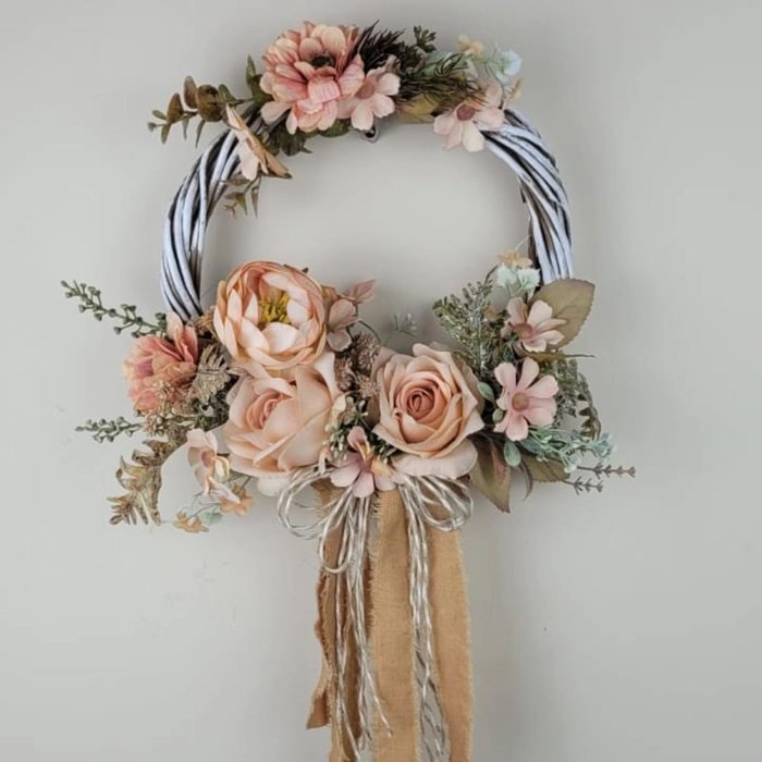 Adicione um toque de elegância natural à sua decoração com a Guirlanda de Cipó com Flores Creme, medindo 37x50 cm. A base de cipó proporciona uma aparência rústica e autêntica, enquanto as flores em tons creme, estrategicamente posicionadas na parte superior e inferior, trazem sofisticação e frescor ao design. Fitas e cordões pendurados nas cores nude complementam a guirlanda, criando um visual suave e harmonioso. Ideal para embelezar portas, paredes ou como um elemento decorativo em ambientes internos, essa guirlanda combina o rústico com o delicado de maneira encantadora.