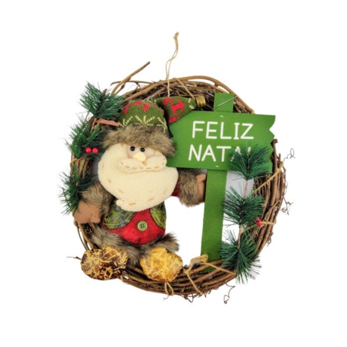 1 Guirlanda com Boneco de Papai Noel com Placa de Feliz Natal