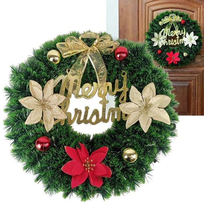 Guirlanda Natal Grande Natalina Enfeite Luxo Porta Janela Loja Casa Comercio Shopping Decoraçao Merr Verde, dourado e vermelho