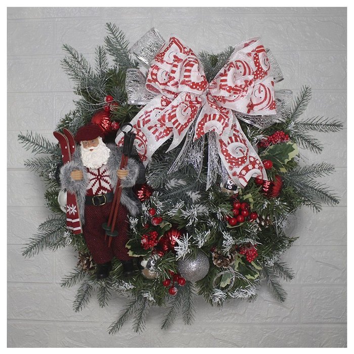 Guirlanda Natalina Enfeite De Porta Papai Noel Esquiador 60cm -