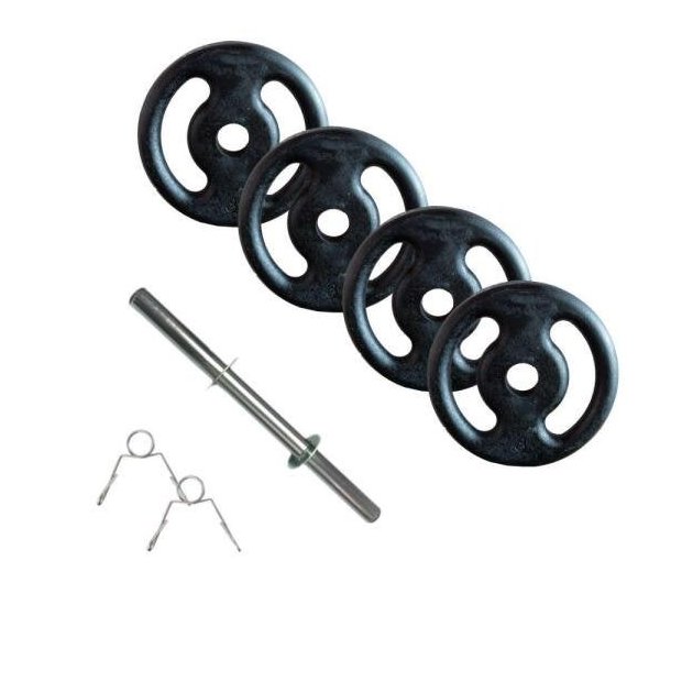 <strong>Acompanha:</strong> 01(uma) barra de tubo oca de 40cm; 02(duas) presilhas; 04(quatro) anilhas de ferro fundido de 3Kg; Exercitar-se é excelente para o corpo e para a alma. As academias estão cada dia mais lotadas; são homens e mulheres em busca do corpo perfeito ou simplesmente em busca de saúde e bem estar. Mas é preciso que elas estejam equipadas e bem preparadas para receberem os seus alunos e o halter ajustável é uma excelente opção para equipar a sua casa com produtos de qualidade com todo o conforto e comodidade, pois você pode montar a barra com o peso desejado, e ir aumentando o peso conforme for elevando seu treinamento. <strong>ESPECIFICAÇÕES:</strong> - As anilhas são confeccionadas em ferro fundido pintada; - O diâmetro do furo é de aprox.: 31mm; - As anilhas são identificadas por marcação com números de seus respectivos pesos; - Possuem pintura especial contra oxidação; - Pegadas laterais facilitando a utilização; - Produto com excelente acabamento; - Aferição do peso de até 5% para mais ou para menos; - Disponíveis exclusivamente na cor preta; - Barra com tratamento zincado; - Capacidade da barra de 40cm: 40Kg total; - Peso da barra de 40cm: Aprox. 400g; <strong>Importante: Para iniciantes aconselhamos o acompanhamento de um profissional, evite utilizar a barra na vertical pois as presilhas podem se soltar e ocasionar a queda das anilhas.</strong>