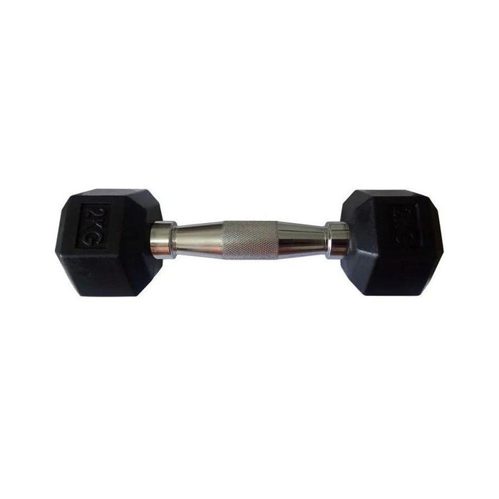 Itens Inclusos: 01 Halteres Sextavado Injetado Com Pegada Cromada 2,0Kg