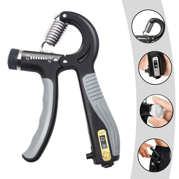 Hand Grip com Ajuste de Peso Exercícios para Antebraço Punho Preto c/ cinza