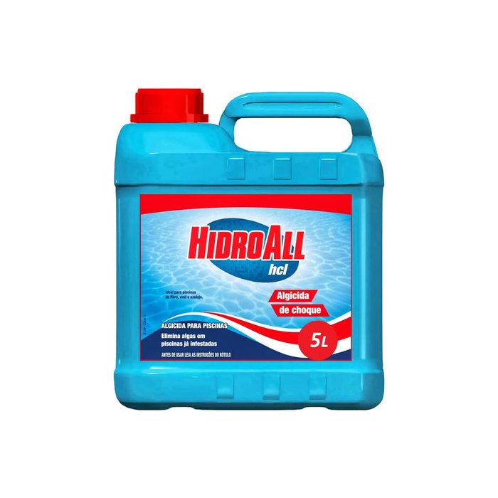 HidroAll HCL Algicida Choque é indicado para a eliminação de algas nas paredes, escadas e na água da piscina (água esverdeada).