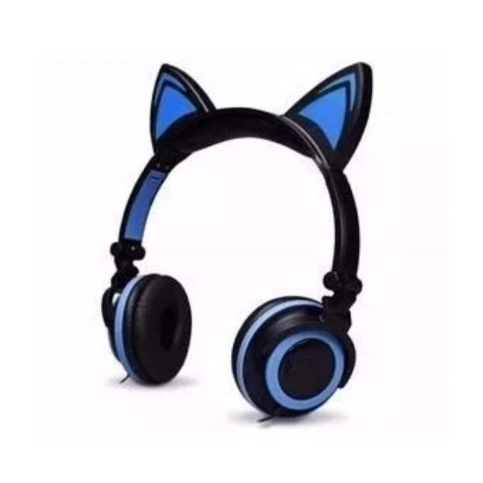 Headphone Orelha Gato Fone de Ouvido com Luzes Preto com Azul Exbom