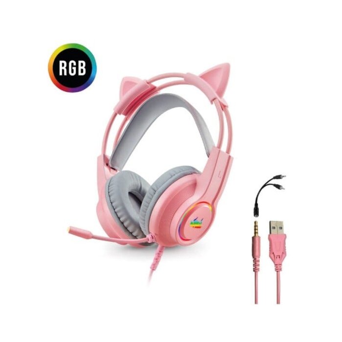 Headset Fone Gamer com Microfone e LED P3/P2 - Kp-Ga04 Rosa