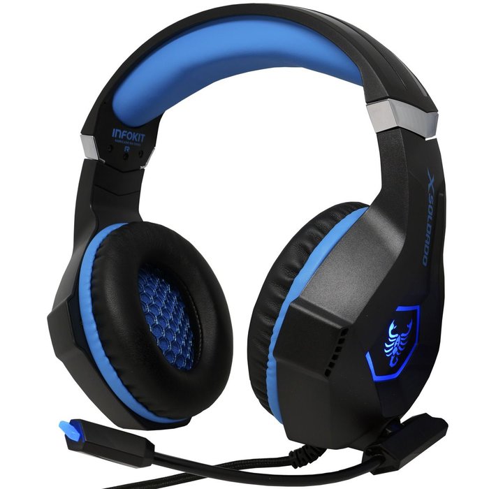 Headset Gamer Fone Ouvido Microfone Scorpion Bass Led Pc Celular Jogos Infokit Gh-x1000 Xsoldado - P Preto/Azul