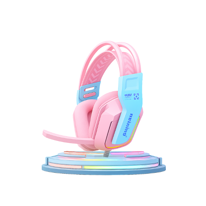 Headset Gamer Rosa RGB – Som Potente, Conforto e Microfone ProfissionalSe você busca um headset gamer de alta qualidade, com som imersivo, microfone nítido e um design incrível, este é o modelo ideal!Estilo e Conforto: Na elegante cor rosa com detalhes azuis, esse headset não é apenas bonito, mas também confortável. Possui duas hastes ajustáveis, sendo uma de plástico flexível e outra com tecido super macio, garantindo um encaixe perfeito. As almofadas acolchoadas oferecem um isolamento acústico excelente, bloqueando ruídos externos para uma experiência ainda mais imersiva.Áudio Potente e Preciso: Equipado com drivers de alta qualidade, proporciona sons nítidos e envolventes, essenciais para quem busca desempenho máximo em jogos, músicas ou chamadas.Microfone Direcional com Mute: O microfone de alta sensibilidade capta sua voz com clareza e tem um botão exclusivo para mutar rapidamente.Iluminação RGB: Deixe seu setup ainda mais estiloso com efeitos de luz RGB, criando um visual gamer incrível.Controles Práticos: Na lateral do headset, você encontra dois botões de fácil acesso: um para mutar o microfone e outro para ajustar o volume rapidamente.Compatibilidade com Computadores e Consoles: Com entrada USB + P2 3.5mm, o headset é totalmente compatível com PCs, notebooks e video games Especificações Técnicas:Tamanho do driver: 50mmResistência: 320+-15%Sensibilidade: 105+-3dBFaixa de frequência: 20Hz - 20KHzMicrofone: 6.0x2.7mmSensibilidade do microfone: -38+-3dBImpedância do microfone: 2.2KDiretividade: CompletaComprimento do fio: 2.2M+-0.15%Tensão do LED: 5.0V+-1%Corrente de trabalho: 180mAEntrada: USB + 3.5mm