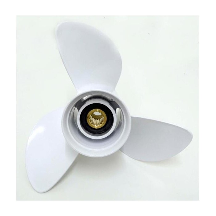Hélice 60/140 para motor de popa, fabricada com processo de injeção em alumínio, segundo a norma internacional de fabricação de hélices;