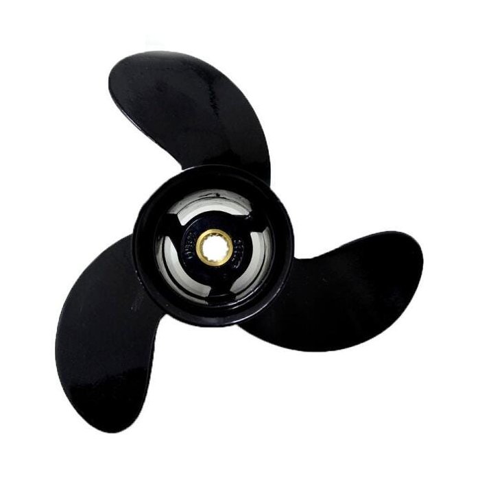 Hélice Johnson/Evinrude 15 para motor de popa, fabricada com processo de injeção em alumínio, segundo a norma internacional de fabricação de hélices;